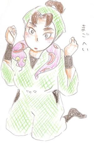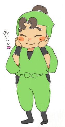 おいしいものを食べたらほっぺたが落っこちそうになった孫兵くん。