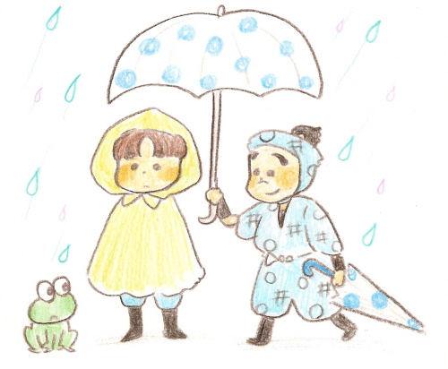 雨が降ってきたよ~!久しぶりの雨だ~めぐみの雨だ~!庭のかえるも喜んでるよ。