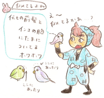 伝七の前髪って、鳥さんによくくっついてる綿毛に似てます。