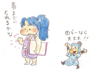 今朝ほんの少し降ったみたいだから初雪はすませちゃったみたい。夕方のニュースで今朝の駅前の雪の様子を放送してたから、やっぱり降ったのかあ。初雪は逃しちゃったねえ。きっと今月中には降ると思うから楽しみにしときます!