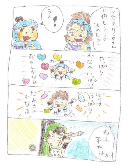 4年生になったら後輩のために夜中にサンタさんになってくれるといいなあと思います。